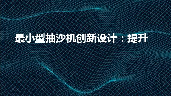 最小型抽沙機創(chuàng)新設計:提升效率的抽沙設備如何改變產業(yè)格局?